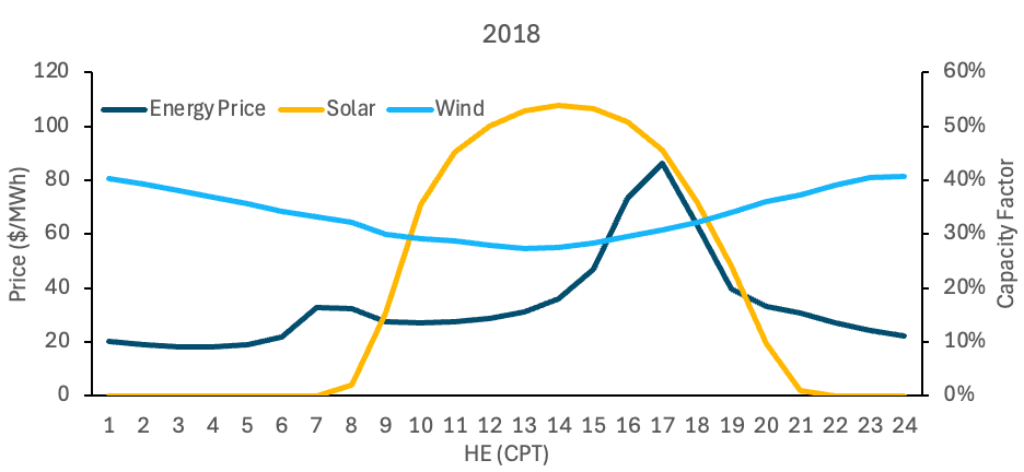 Comparison of 2018 and 2025 Wind and Solar Shapes vs. Price