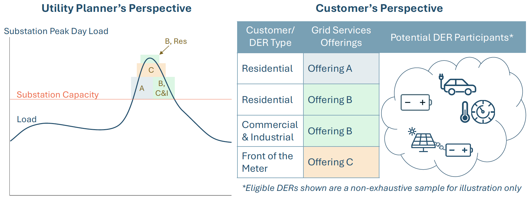 - Bridge-to-wires: when electricity demand is growing faster than new infrastructure can be planned, permitted, and built, DERs can temporarily cover the gap, allowing new load to connect sooner without reliability concerns or the need for more economically and environmentally costly interim solutions.