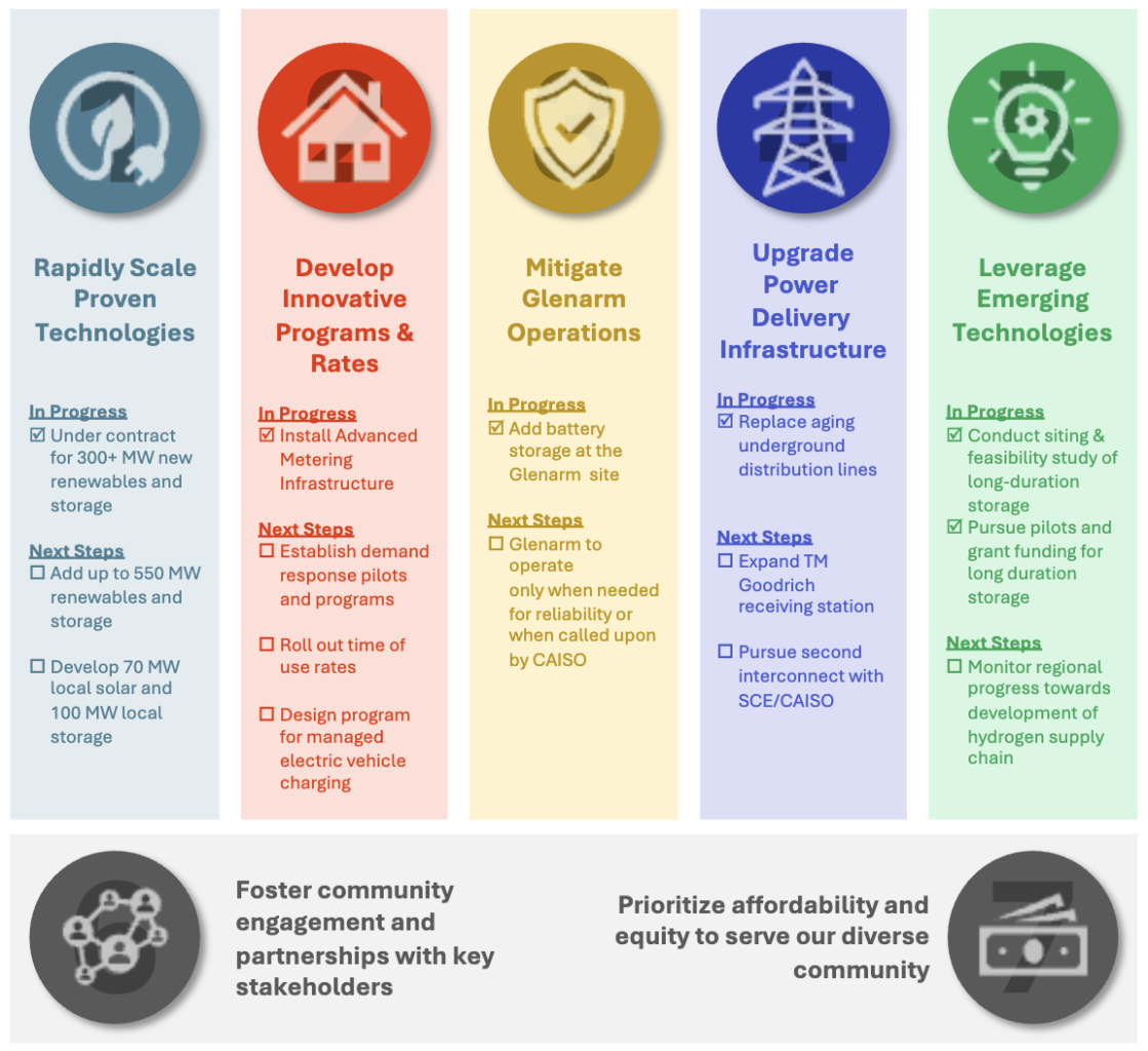 The fifth pillar emphasizes monitoring and preparing for emerging technologies. While today’s plan relies primarily on commercially available resources, technologies such as long-duration storage and hydrogen could play a role in the future. The plan positions Pasadena to take advantage of these options as they mature.