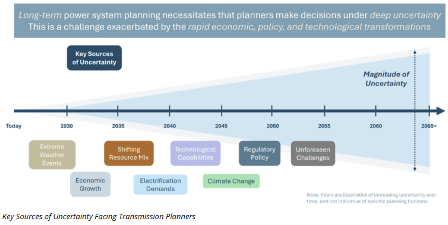 - Enhancing transmission planning frameworks to better account for key sources of long-term uncertainty, including the impacts of data centers, electrification-driven load growth, and changing market and policy conditions;